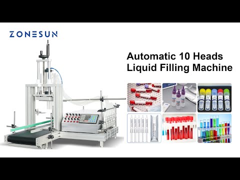 The ZONESUN ZS-DTPP10D 10 Diving Nozzles Peristaltic Pump Liquid Filling Machine is designed for precise tube filling of liquids such as reagents, e-liquid, e-juice, and chemical or biological agents. Equipped with a conveyor and diving nozzles, it uses peristaltic pumps that are easy to clean and replace, ensuring contamination-free filling. Widely used in pharmaceutical, medical, chemical, and cosmetics industries, this machine supports multi-nozzle customization and can be integrated into automated packaging lines for high-efficiency production.