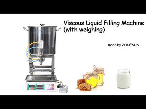 The ZONESUN 50-2500g Pneumatic Paste Filling and Weighing Machine is designed for accurate and stable filling of viscous products under 3000cP, such as honey, yogurt, milk, sesame oil, and sesame paste. It can also handle liquids with soft, homogeneous particles that flow smoothly. With a filling speed of approximately 6–10 seconds per 500g bottle, this machine ensures precision, efficiency, and easy cleaning—ideal for food and daily chemical industries.