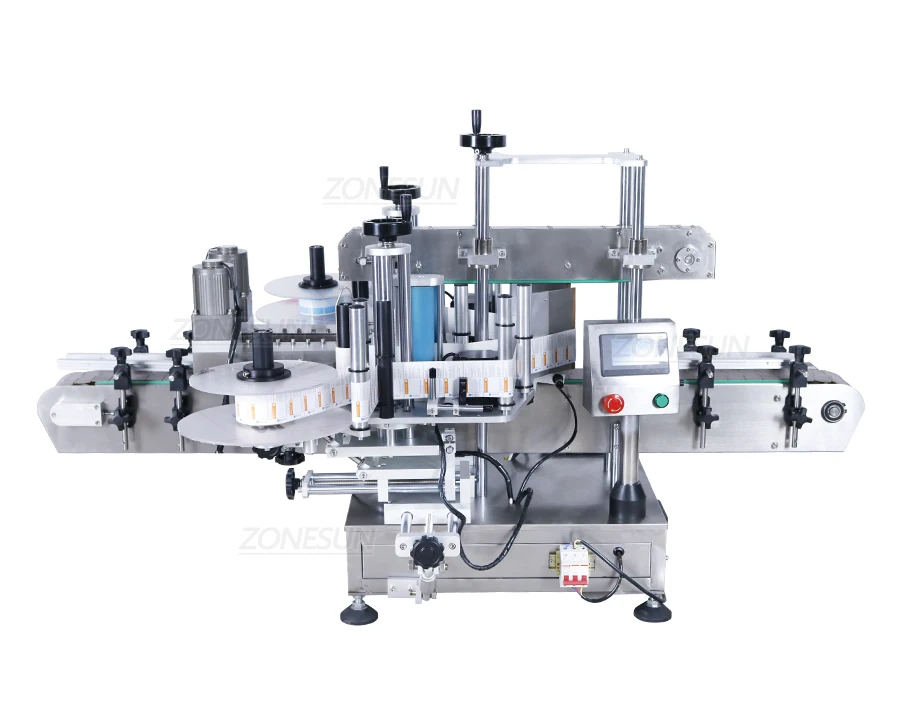 The ZONESUN ZS-TB300M is a compact automatic labeling machine designed for flat surfaces such as square bottles. Capable of single-side or double-side labeling, it offers flexibility for various packaging needs. Its desktop design makes it ideal for small to medium production environments, while maintaining high labeling precision and speed. Widely used in food, chemical, cosmetic, and pharmaceutical industries, this machine helps streamline labeling processes and enhance product presentation. Customizable fixtures ensure compatibility with different bottle sizes and shapes.