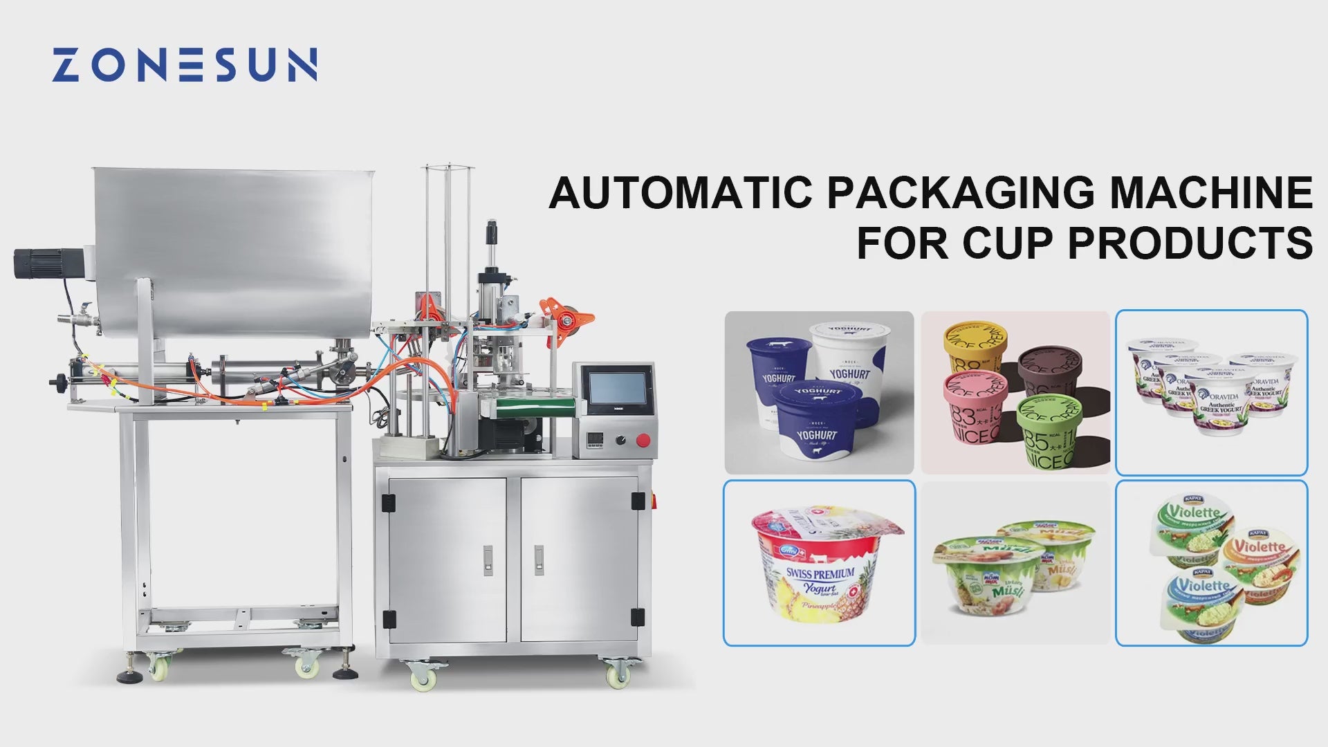Si tratta di una macchina confezionatrice tutto in uno con funzioni di alimentazione delle tazze, riempimento del materiale e sigillatura delle tazze per prodotti in tazza, come gelato in tazza e yogurt in tazza.