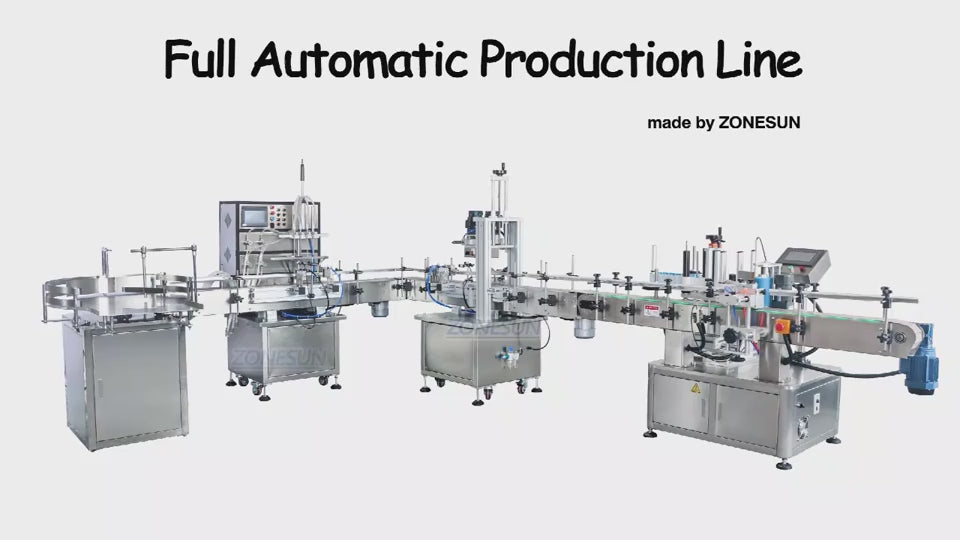 The ZONESUN 4‑Nozzles Liquid Filling, Capping & Round Bottle Labeling Production Line is a fully integrated solution designed to streamline your packaging process. It automatically arranges bottles, fills them with liquid, applies caps, and labels round bottles with precision — significantly reducing manual handling and boosting production efficiency. Customization options are available to match different product materials, ensuring optimal compatibility and performance. Widely used in the food, beverage, cosmetics, and pharmaceutical industries, this line delivers consistent, professional results for both small‑batch and large‑scale operations.