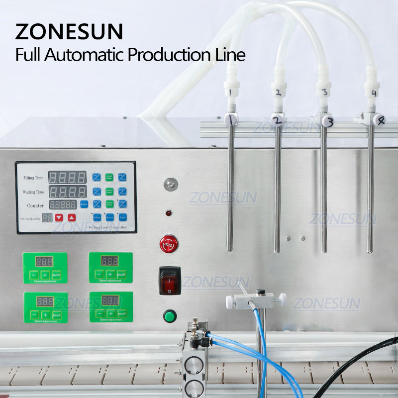 The ZONESUN ZS-FAL180C7 is a compact U-shaped automatic production line integrating liquid filling, capping, and labeling functions. Its space-saving design is ideal for small workshops and limited factory layouts. Equipped with four peristaltic pumps and diving nozzles, it ensures hygienic and accurate filling—even for foamy liquids like milk, juice, essential oils, and ink. Each nozzle’s speed is independently adjustable for flexible operation. The capping unit accommodates various cap shapes, while the labeling system uses precise positioning for single or double-sided labeling on round bottles. Compatible with bottle unscramblers and sorting machines, it supports fully automated, labor-free production. Widely used in cosmetics, pharmaceuticals, beverages, and catering industries.