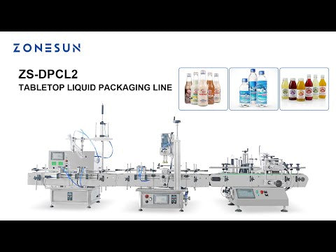 The ZONESUN ZS-DPCL2 and ZS-FAL180D5 Custom Liquid Filling Capping Round Bottle Labeling Production Lines are compact tabletop solutions tailored for different closure types. One line is designed for screw caps, while the other is optimized for corks, ensuring precise and secure sealing for various products. Each integrates liquid filling, capping, and labeling in a streamlined process, delivering consistent quality and efficiency. As a complete packaging solution, these lines are ideal for small to medium-scale production in industries such as beverages, cosmetics, and specialty liquids.