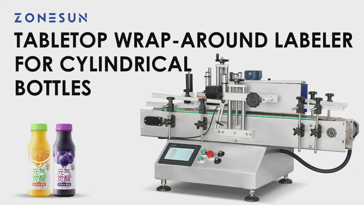 The ZONESUN ZS-TB150 Automatic Round Bottle Labeling Machine is a compact tabletop wrap-around labeler designed for cylindrical containers. Featuring a user-friendly interface and intuitive controls, it is easy to operate even for beginners. Built with durable materials for long-lasting performance, it is also simple to maintain and clean. With its application belt, it can label up to 3,000 bottles per hour, making it an efficient and reliable choice for small to medium-scale production lines in food, beverage, cosmetics, and other industries.