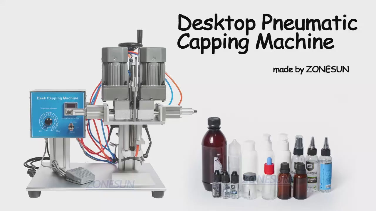 The ZONESUN ZS‑XG6100 desktop pneumatic semi‑automatic capping machine is designed for a wide range of bottle caps, including spray bottle tops and smoking oil caps. Compatible with cap diameters from 20 mm to 60 mm, it offers greater versatility than standard capping machines. Its pneumatic system ensures firm, consistent sealing, reducing operator fatigue and improving productivity. Compact yet durable, it is ideal for small to medium‑scale production in cosmetics, pharmaceuticals, food, and chemical industries.