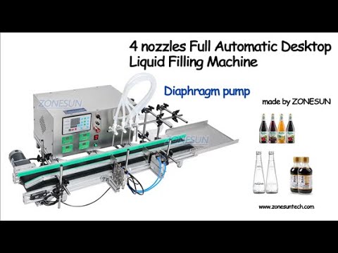 The ZONESUN ZS‑DTDP4 Automatic Desktop Liquid Filling Machine combines the convenience of a compact design with the efficiency of a full‑automatic system. Featuring four diaphragm‑pump nozzles—each independently controllable—it delivers precise, hygienic filling for water, beverages, cosmetics, and other low‑viscosity liquids. The integrated conveyor streamlines container handling, while adjustable filling time and interval settings allow easy customization for different production needs. Stainless steel construction ensures durability and easy cleaning, making it ideal for small to medium scale food, beverage, cosmetic, and chemical operations.