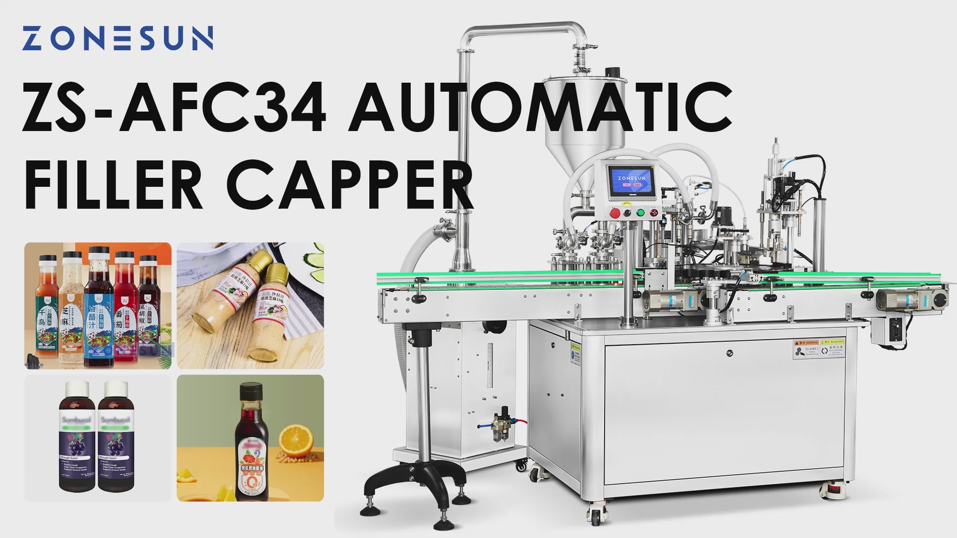 The Zonesun ZS‑AFC34 Monoblock Filler Capper is an advanced, space‑saving solution that integrates precision filling and secure capping into a single streamlined process. Equipped with a double‑head servo piston pump, it delivers highly accurate dosing for thick pastes, creams, and viscous liquids. The vibratory feeder ensures smooth, consistent cap placement, while the servo motor‑driven capping system provides reliable, airtight closures. A no‑bottle‑no‑fill safeguard prevents product waste and enhances operational efficiency. Designed for versatility, this machine is ideal for food, cosmetics, pharmaceuticals, and chemical industries seeking consistent quality and high throughput in medium‑ to large‑scale production.