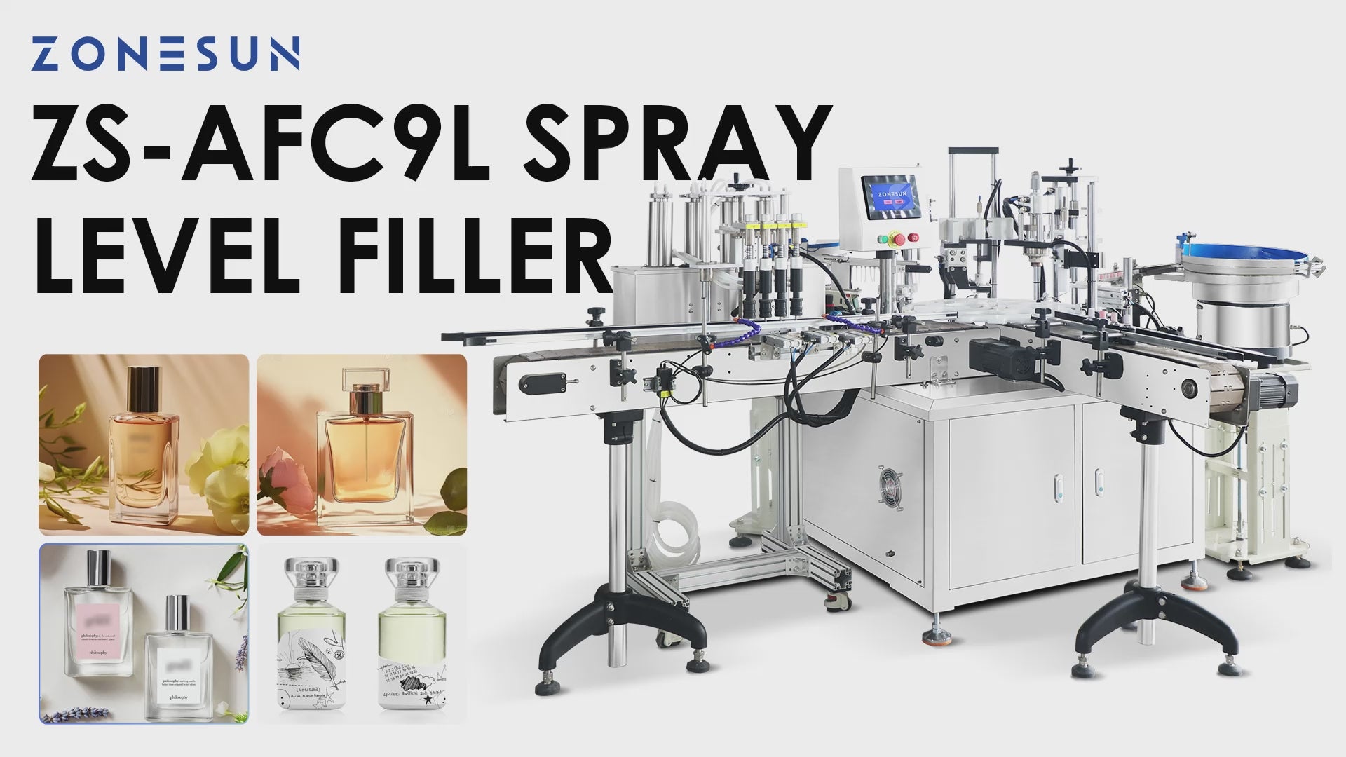 The Zonesun ZS-AFC9L Automatic Perfume Packaging Machine is a comprehensive monoblock system crafted for high-speed, precise perfume bottling. It features vacuum liquid level filling, automatic nozzle sorting and crimping, outer cap placement via vibratory bowl, and secure cap pressing—all in one streamlined solution. Ideal for scaling production, this advanced machine boosts productivity while ensuring reliability and ease of operation.