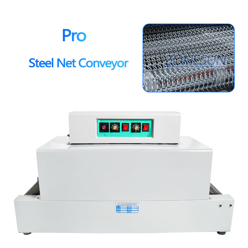 The ZONESUN ZS-BS260 is a compact tabletop automatic shrinking machine designed for packaging products with PP, PVC, and POF shrink films. Ideal for items like shoes, beverage cans, yoga mats, and tissue packs, it delivers consistent shrink wrapping results with minimal manual intervention. Its automatic operation and space-saving design make it perfect for cosmetic, beverage, and daily chemical industries. Whether you're streamlining small-scale production or enhancing packaging presentation, the ZS-BS260 offers reliable performance and professional-grade shrink sealing.