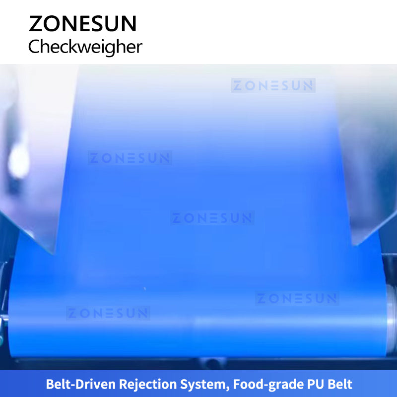 The ZONESUN ZS‑CW150 Compact Checkweigher is engineered for precise, high‑speed weight verification of small products under 200 g. With a minimum scale of 0.1 g and ±0.3 g accuracy, it ensures every item meets exact weight specifications. Its belt‑driven rejection system gently removes underweight or overweight products without damaging delicate goods, making it ideal for small pouches, sachets, and packaged items. Handling products up to 200 × 150 mm at speeds of 4,000 pcs/h, the ZS‑CW150 is perfect for space‑constrained production lines. Built from durable, food‑safe materials, it offers an entry‑level yet professional solution for preventing missing or excess components in your packaging process.
