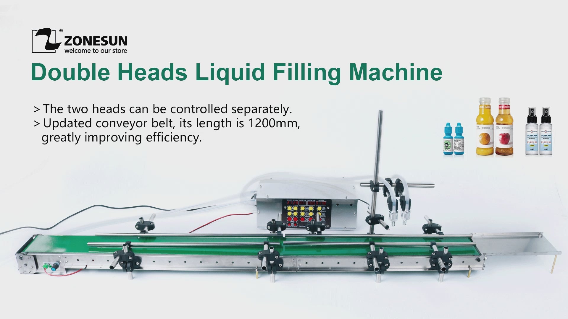 The ZONESUN ZS-DPYT200L is a compact, efficient 2-head automatic liquid filling machine designed for low-viscosity liquids without particles, such as essential oils, juice, milk, and water-based solutions. Each nozzle’s filling speed can be controlled independently, allowing precise dosing and flexibility. The 1200mm waterproof conveyor belt enhances productivity and ensures smooth bottle transport. With a digital control panel, users can easily set parameters like filling time, while the intelligent electric eye detects bottles accurately for automated operation. Its small footprint makes it an ideal choice for individual workshops, startups, and small-scale production lines.