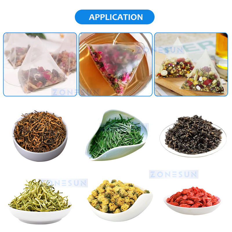 The ZONESUN ZS-SJB90 Automatic VFFS Pyramid Tea Bag Packaging Machine offers a flexible and efficient solution for tea packaging. Capable of producing both pyramid tea bags with string and tag, as well as rectangular tea bags, it ensures high-quality sealing and precise filling. Designed to preserve the freshness and aroma of tea, this advanced machine enhances productivity and adapts easily to diverse packaging needs.