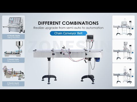 The ZONESUN ZS-CB100P is a 1.9-meter automatic chain conveyor belt designed to transport goods efficiently across production lines. Built for universal and food-grade applications, it features a durable stainless steel frame, adjustable working height, and a PLC control panel for easy speed and parameter adjustment. The conveyor operates at up to 8 meters per minute, making it ideal for integrating with semi-automatic filling, capping, and labeling machines to create a fully automated packaging system. Its chain-driven design supports heavier loads and ensures smooth, stable movement of bottles, jars, or containers. Widely used in food, cosmetics, pharmaceuticals, and daily chemical industries, the ZS-CB100P boosts productivity while saving space and labor costs.