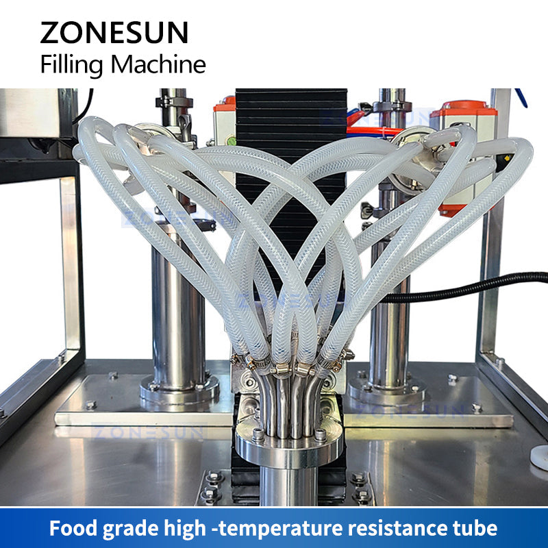 The ZONESUN ZS-FM250 Semi-automatic Dual-Color Swirl Paste Piston Pump Filling Machine is designed to create visually striking dual-color spiral effects while filling. Equipped with multiple nozzles, it can simultaneously dispense two different colored substances with precision and consistency. The sturdy bottle-holding base ensures stability, while the descending nozzles perform accurate filling. Its rotatable base adds flexibility, making it ideal for enhancing both efficiency and product aesthetics in cosmetics, food, and specialty paste production.